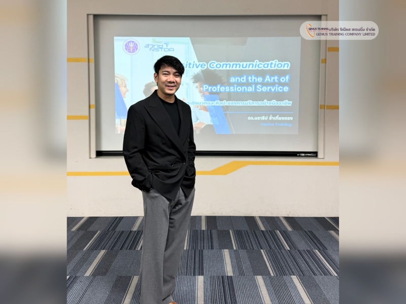 สำนักงานพัฒนาวิทยาศาสตร์และเทคโนโลยีแห่งชาติ (สวทช.) จัดอบรมหลักสูตร การสื่อสารเชิงบวกและศิลปะแห่งการบริการอย่างมืออาชีพ วันจันทร์ที่ 9 มีนาคม พ.ศ. 2569 โดยวิทยากร : ดร.นราธิป อ่ำเที่ยงตรง